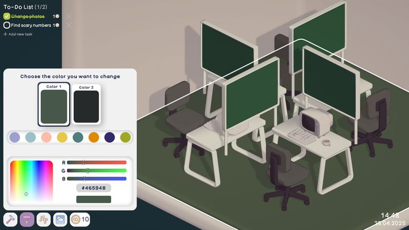 Bạn không thích màu mặc định? Không vấn đề gì! Bạn có thể sơn lại bất kỳ vật dụng nào thành bất kỳ màu nào bạn yêu thích. Chúng tôi cũng đã thêm tính năng bảng màu, nơi bạn có thể lưu các màu yêu thích để truy cập nhanh.
